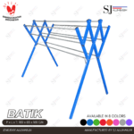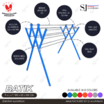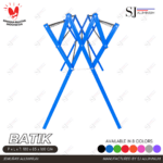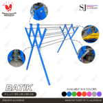 Jemuran aluminium tipe Batik warna biru dengan desain kokoh dan ringan, ideal untuk menjemur pakaian dalam jumlah banyak di dalam maupun luar ruangan.