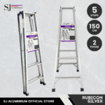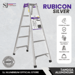 Tangga lipat aluminium tipe Rubicon ukuran 1,5 meter dengan desain jumbo dan warna silver elegan, cocok untuk kebutuhan rumah tangga hingga profesional.