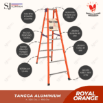 Terbuat dari material aluminium ringan dan tahan karat, tangga ini mudah dipindahkan dan disimpan. Warna orange memberikan kesan cerah dan dinamis, sekaligus meningkatkan visibilitas saat digunakan.